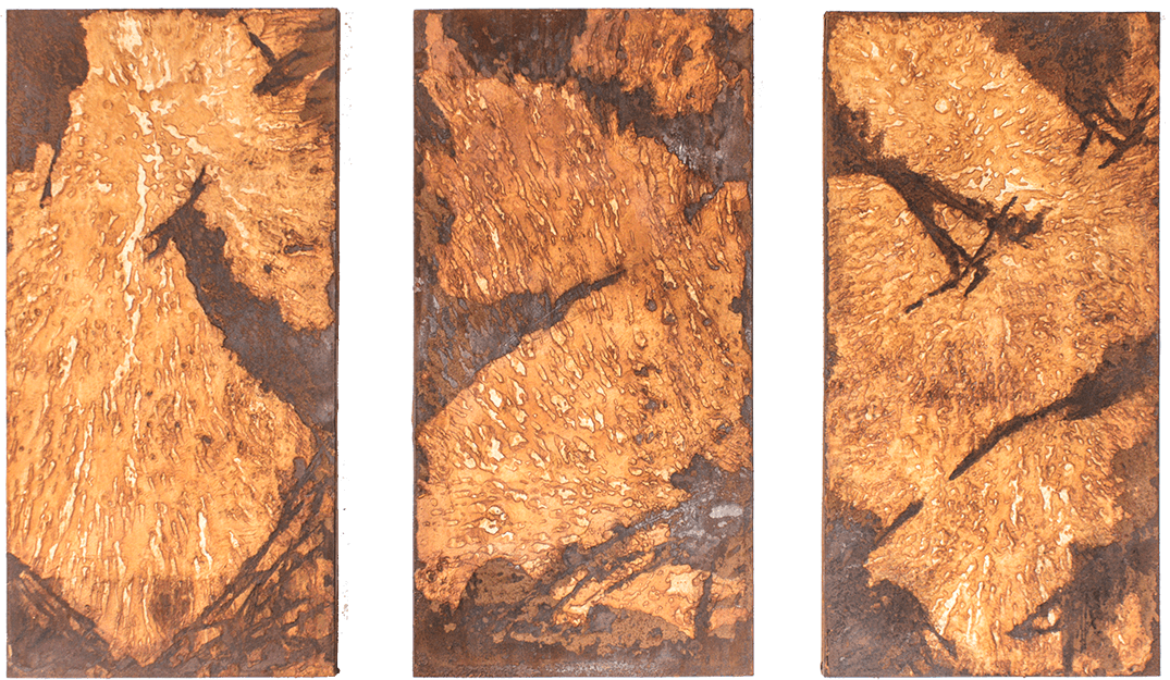 I calchi di carta raccontano parti di un vissuto naturale irripetibile di cui sono stati essi stessi parte integrante nel momento della loro realizzazione, diventando così una sorta di corteccia della corteccia.